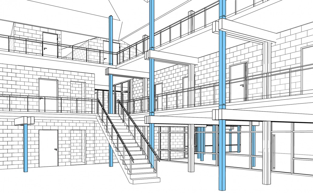Das 3D Gebäudemodell wird im System Autodesk Revit/ReCap erstellt und kann als Grundlage für das Building Information Modeling (BIM) verwendet werden. Es können exakte Maße sowie Flächen und Volumen entnommen werden. Aus 3D CAD-Modellen können erforderliche Pläne wie Ansichten, Schnitte, Perspektiven, Grundrisse erstellt werden.